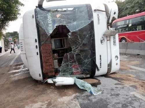 Thời điểm này, chiếc xe khách Hoàng Long BKS 79D-5658 đang chạy theo hướng Hà Nội - TP Vinh thì bất ngờ đâm vào dải phân cách rồi lật nghiêng ra quốc lộ.