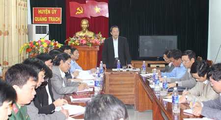 | Ông Hoàng Đăng Quang - Bí thư Tỉnh ủy Quảng Bình làm việc với Ban thường vụ Huyện ủy Quảng Trạch |