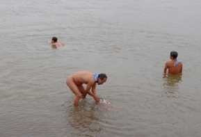 | Những người đang tắm tiên ở bãi giữa, phải có sức khỏe siêu vô địch họ mới dám bước xuống nước lạnh trong thời tiết này. Ảnh: GDVN |