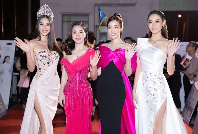 Hoa hậu Tiểu Vy, bà Phạm Kim Dung - Phó trưởng BTC, Hoa hậu Đỗ Mỹ Linh và Miss World Việt Nam Lương Thuỳ Linh - MC Hoa hậu Việt Nam 2020.
