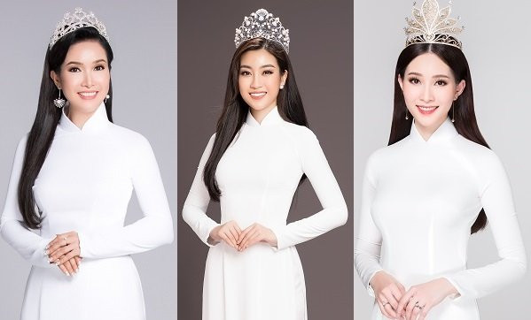 Hoa hậu Việt Nam 2012 Đặng Thu Thảo. Dù mang vương miện hay chỉ đơn giản là cầm nón lá tạo dáng với áo dài, các Hoa hậu Việt Nam vẫn khiến khán giả thích thú bởi nhan sắc xinh đẹp, rạng rỡ của mình.