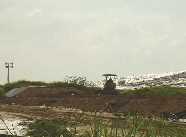 | San lấp để mở rộng diện tích chứa rác thải. |