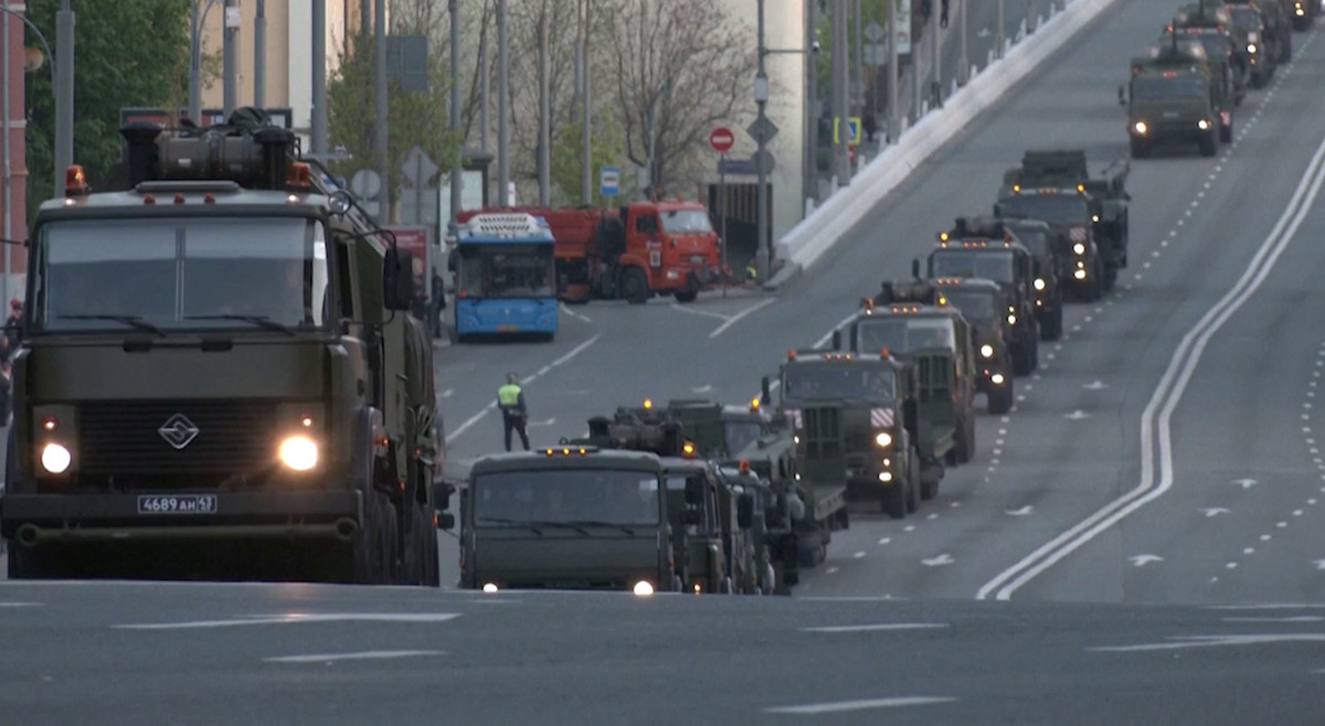 Các lực lượng vũ trang Nga đưa một số khí tài quân sự tới Moskva vào tối 27/4, chuẩn bị tổng duyệt cho cuộc duyệt binh Ngày Chiến thắng vào 9/5.