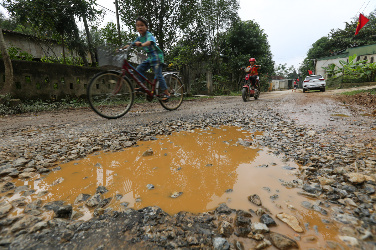 Việc tuyến đường xuống cấp khiến người và phương tiện di chuyển gặp không ít khó khăn, nhất là những em học sinh tới trường.