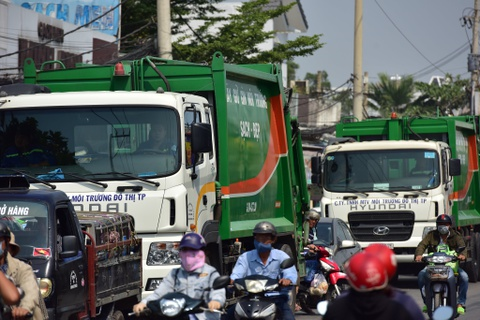 Dân 'không thở nổi' khi kẹt bên xe chở rác trên quốc lộ 50, TP.HCM