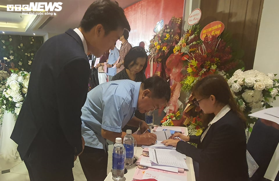 Những khách hàng đầu tiên của dự án Khu đô thị mới Đông Nam Thuỷ An ký nhận giấy chứng nhận quyền sử dụng đất sau hơn 10 năm mòn mỏi chờ đợi. (Ảnh: Nguyễn Vương).