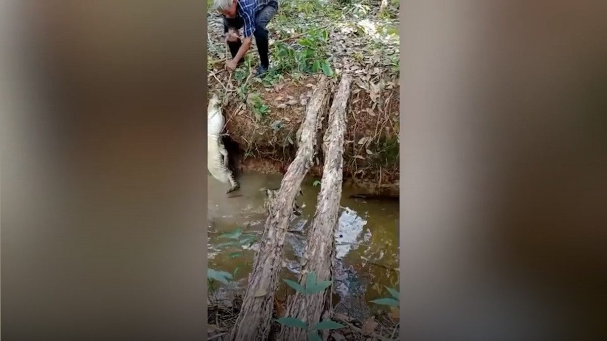 Người dân dũng cảm bắt được con cá sấu khổng lồ ẩn nấp dưới mương ở Thái Lan, con cá sấu nước ngọt dài 2,2 m và nặng 60 kg, ước tính nó đã hơn 10 tuổi.
