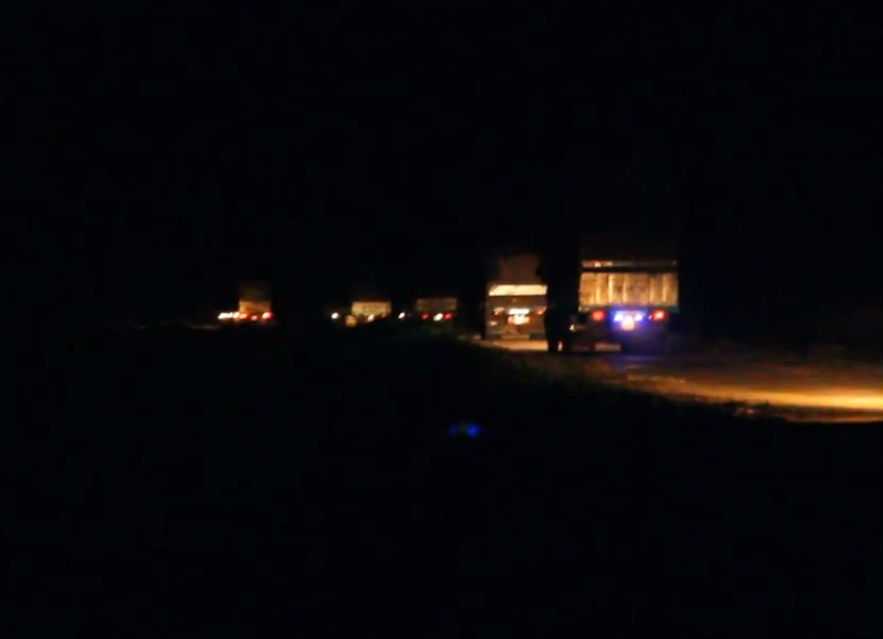 | Hàng đoàn xe quá tải nối đuôi nhau chạy trên tuyến đường đê ven biển vào buổi đêm. (Ảnh: Sỹ Hòa chụp từ clip). |