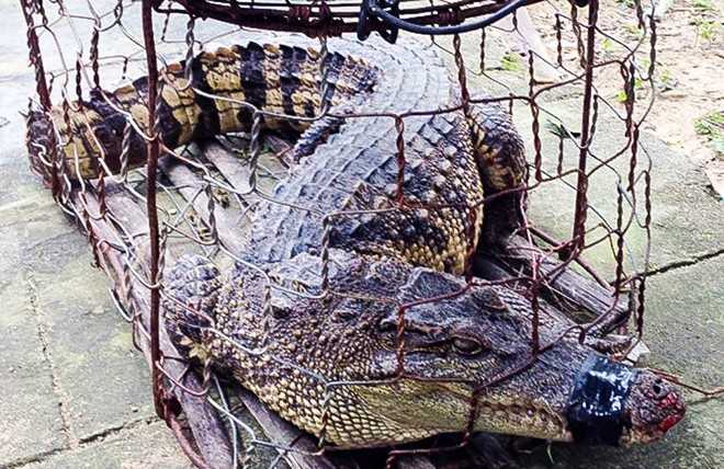 | Con cá sấu người dân bắt được. Ảnh: Kiểm lâm Quảng Nam. |