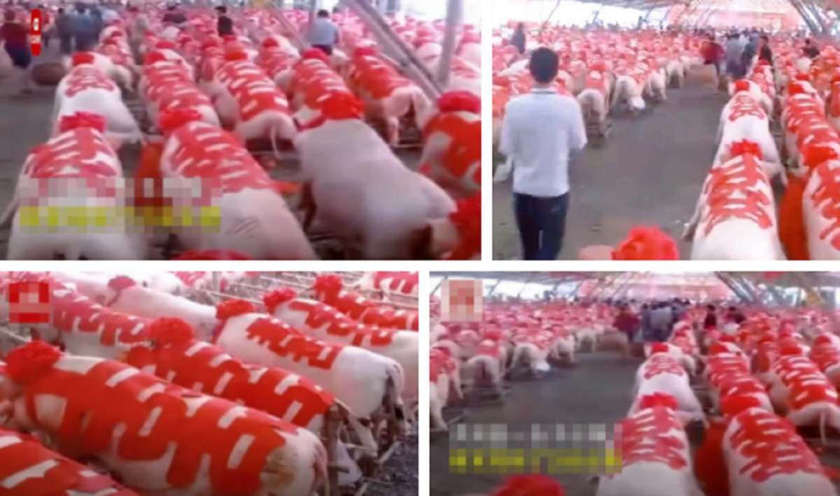 Một khung cảnh thật sự hoành tráng xuất hiện, các con lợn đều dán chữ Hỷ trên lưng, sẵn sàng chào đón ngày vui của cô chủ.