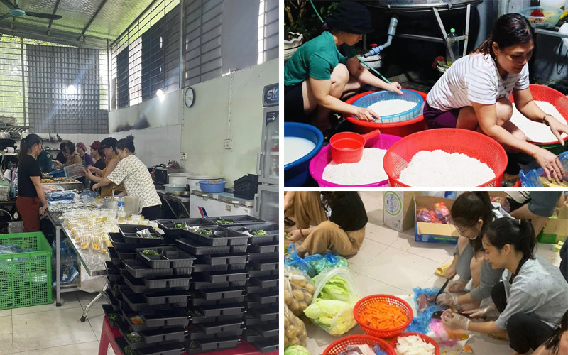 Người dân kêu gọi ủng hộ trên mạng và trực tiếp tham gia nấu cơm, tạo nên sức lan tỏa lớn. (Ảnh: Khánh Chung)