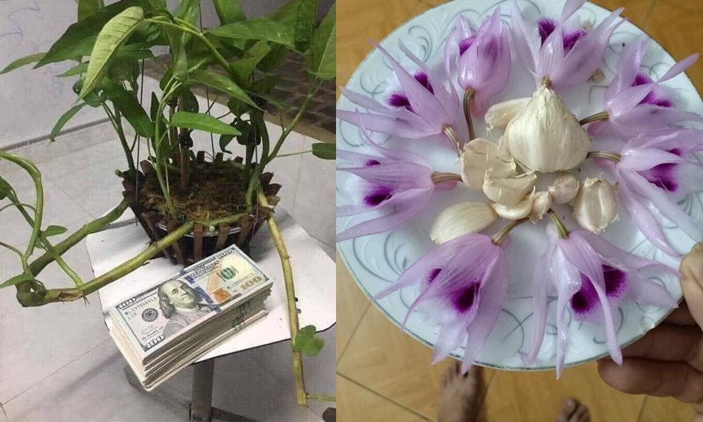 Rau muống, hoa xuyến chi, hoa quỳnh... cũng được lôi vào chế ảnh giao dịch "lan độ biến tiền tỷ". (Ảnh: Facebook)