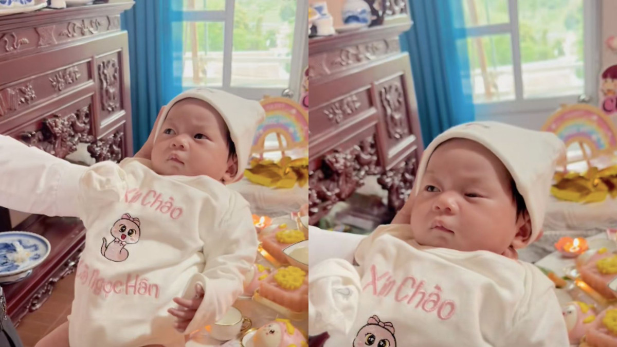 Chủ tài khoản đăng tải clip là mẹ của em bé. Theo chia sẻ trên trang cá nhân của chị, bé có tên Ngọc Hân, tên ở nhà là bé Bún. Ngọc Hân ra đời vào ngày 1/3. Clip được quay trong tiệc ngọt mừng bé tròn một tháng tuổi. Người mẹ chia sẻ, gương mặt với biểu cảm độc đáo, ngộ nghĩnh của bé Bún "chọc cười" nhiều người quen, họ hàng khi đến thăm.