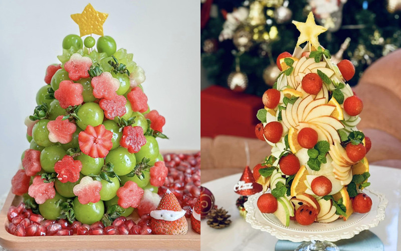 Lễ Giáng sinh cận kề, hội chị em khéo tay lại được dịp bày biện, sắp xếp các loại trái cây thành hình cây thông Noel độc đáo, lạ mắt. Các nguyên liệu đều dễ tìm nên việc "biến" các loại trái cây thành cây thông Noel rất đơn giản. Trong ảnh là tác phẩm của chị Vũ Thị Ngọc Bích (36 tuổi, mẹ 3 con ở Hà Nội). (Ảnh: Ngọc Bích)