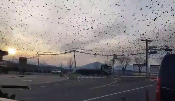 Mới đây, một trang Fanpage địa phương của người dùng Hàn Quốc đăng tải thông tin và đoạn clip ghi lại hình ảnh bầu trời thành phố Gyeongsan, Hàn Quốc xuất hiện đàn quạ đen dày đặc. Trong đoạn clip ngắn, đàn quạ đen bay rợp trời. Người đàn ông trong xe liên tục nói bằng giọng địa phương: "Trời ơi, nhiều thật đấy!"