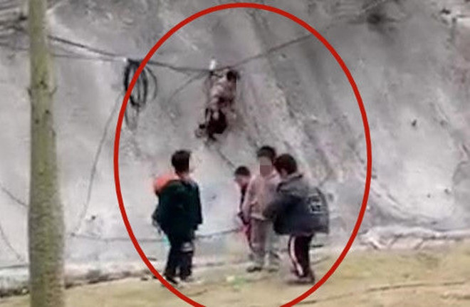 Vài ngày trước, trong lúc ra ngoài đổ rác, người phụ nữ họ Vĩ ở Quảng Tây, Trung Quốc hết hồn khi chứng kiến cảnh tượng đáng sợ: Một nhóm bé trai khoảng 5 - 6 tuổi chơi cùng nhau bên vệ đường, cạnh đống dây điện rủ xuống bên sườn dốc.