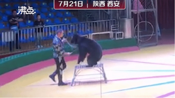 Cảnh này được ghi lại bởi một khán giả xem xiếc động vật ở Công viên hoang dã ở Tần Lĩnh, Tây An (Thiểm Tây, Trung Quốc). Do sức ép của dư luận, phía công viên phải tổ chức điều tra. Kết quả điều tra xác nhận, đúng là đoạn video được quay trong buổi biểu diễn tại Công viên hoang dã Tần Lĩnh, huấn luyện viên quả thật có sử dụng dùi cui để đâm gấu đen.