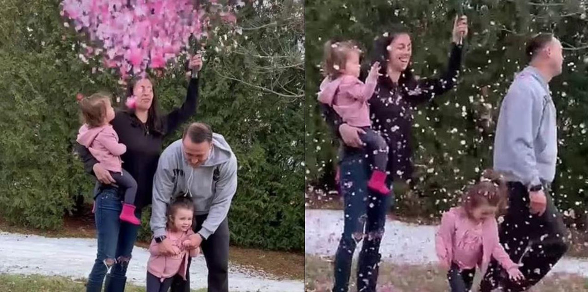 Một phụ nữ Mỹ đang mang bầu con thứ ba, chủ tài khoản TikTok @kc.fulton, mới đây đăng tải video ghi lại khoảnh khắc chị thông báo giới tính đứa con sắp chào đời. Xuất hiện trong video có vợ chồng chị cùng hai con gái 3 tuổi và 1 tuổi.