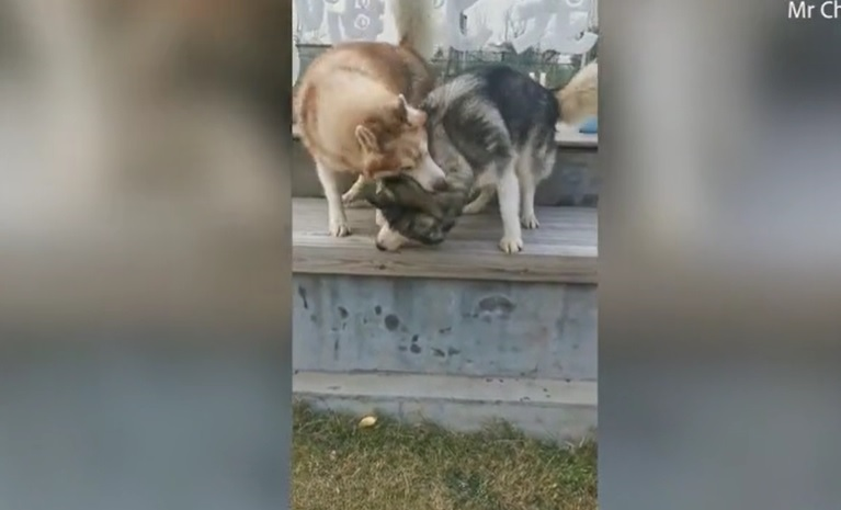 Video: Chú chó Husky mù được em hướng dẫn nhảy xuống đất