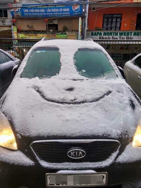Hình ảnh tuyết rơi phủ kín ô tô tại Sapa
