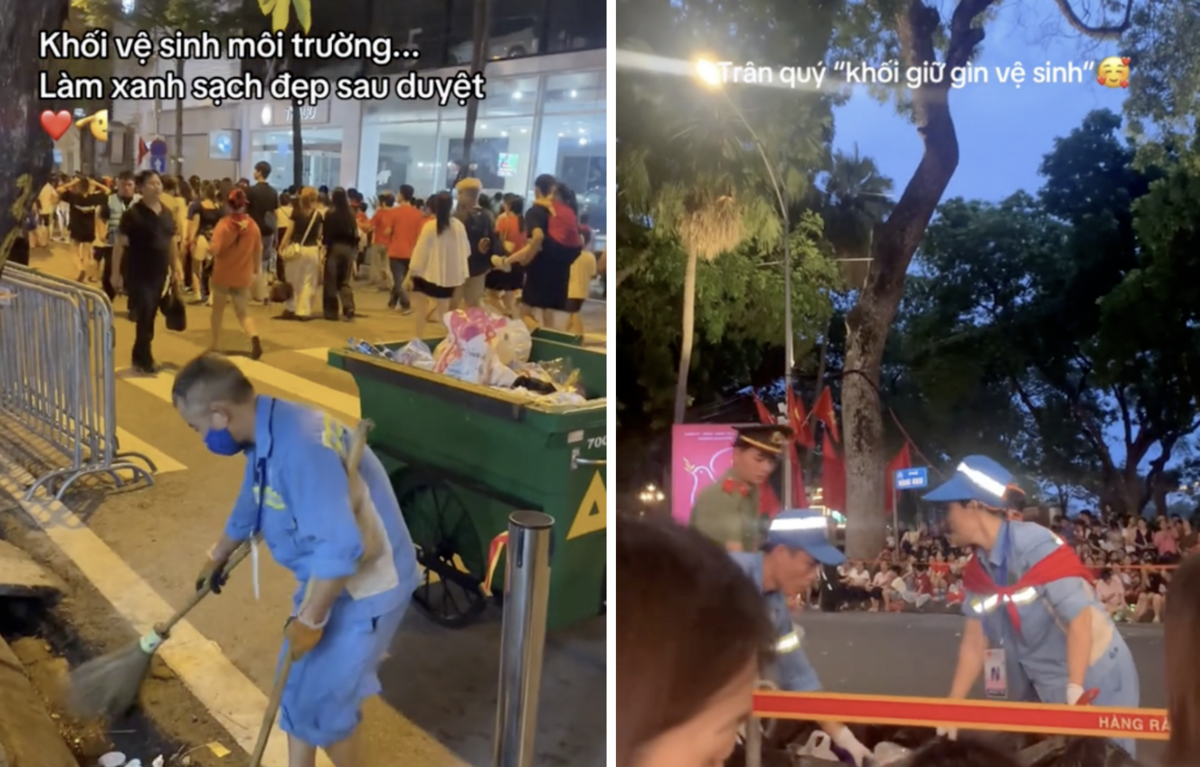 Bên cạnh dòng người tấp nập, giữa âm hưởng nhịp trống quân hành rộn rã, họ bền bỉ làm công việc quét dọn, thu gom từng túi rác trên phố. Biển người từ mọi nơi đổ về xem các buổi tổng hợp luyện, sơ duyệt kéo theo số rác thải phát sinh tăng đột biến; nhưng không vì thế mà các tuyến phố mất đi vẻ sạch đẹp. Những chiếc áo xanh, áo cam quen thuộc lặng lẽ len lỏi giữa dòng người, giữ cho Hà Nội diện mạo tươm tất trong những ngày đặc biệt này.