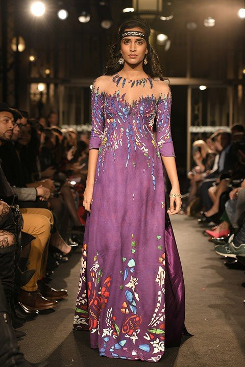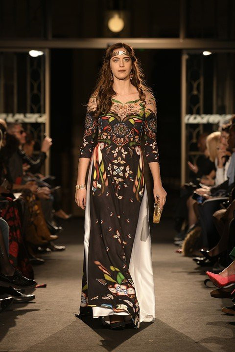 Dàn mỹ nhân Pháp trong đó có Hoa hậu Pháp 1997 - Patricia Spehar, nữ diễn viên chính Người đẹp và Quái vật Myriam Charleins, nữ MC - diễn viên Cyrielle Joelle… đã có màn “công phá” ấn tượng trong trang phục áo dài tại đêm diễn.