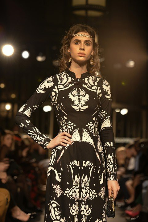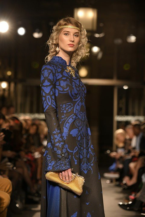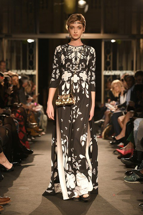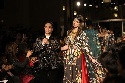 Anh dùng tông màu đỏ - đen thống trị mọi xu hướng của thời trang cùng những họa tiết được sắp xếp một cách tài tình trên chất nhung êm mịn, như vừa bước ra từ một câu chuyện cổ tích của người Á Đông.