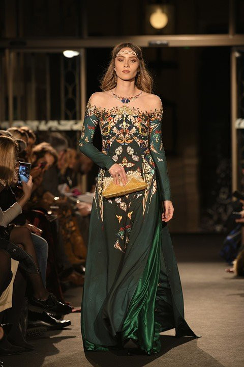Các chi tiết thêu haute couture với phần cổ áo gồm những họa tiết dát vàng xuất hiện như những món trang sức quý giá đem lại sự lỗng lẫy, làm tăng thêm bội phần vẻ đẹp quyến rũ, quyền lực của dàn mỹ nhân Pháp.