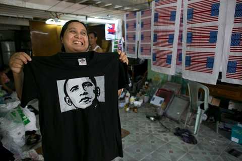 | Những chiếc áo in hình ông Obama được bày bán ở Myanmar |
