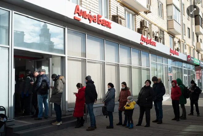 Trong khi đó, các ngân hàng ở Nga lo ngại việc người dân đổ xô đi rút tiền như hiện tại.