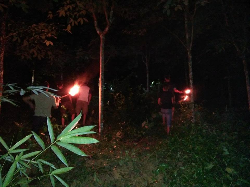 Người dân xã Phúc Sơn đang đốt lửa xua đuổi voi vào rừng