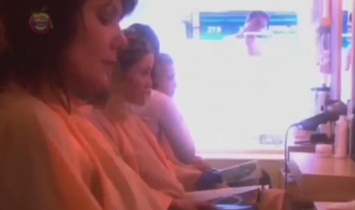 Anh chàng lau một lớp xà phòng trên kính, để lộ thân hình 6 múi lực lưỡng, các cô nàng trong tiệm làm tóc lại càng hào hứng.