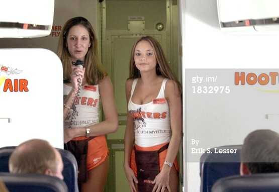| Hooter Air hoạt động theo phương châm: Các hành khách khi bước lên máy bay sẽ giống như bước vào một nhà hàng, được các quý cô ăn mặc gợi cảm hướng dẫn ghế ngồi và phục vụ đồ ăn. |