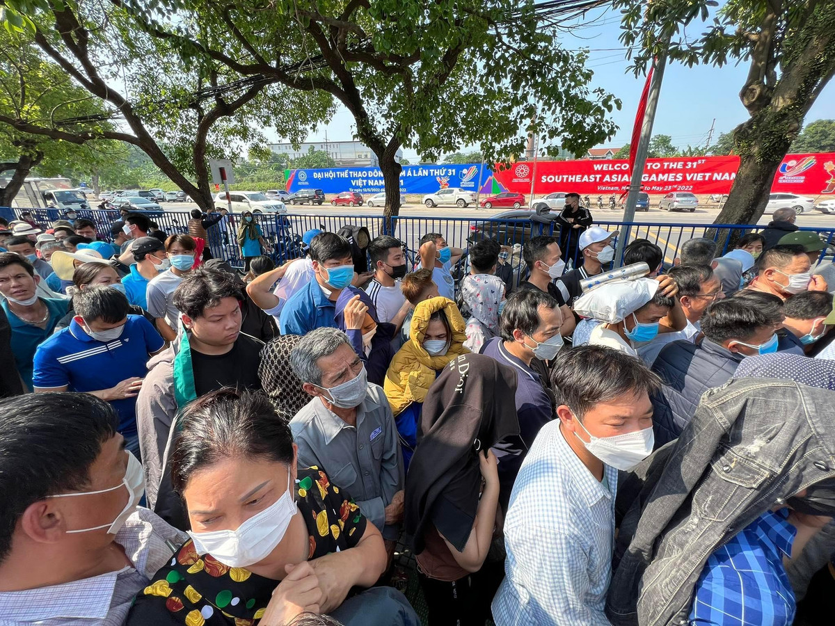 Cơn sốt vé được dự báo từ sớm khi người mua xếp hàng dài giữ chỗ bên ngoài sân vận động Việt Trì từ tối qua (2/5). Nhiều người mang cả vật dụng cá nhân, chăn, chiếu, ở qua đêm tại đây để có thể mua vé sớm. Số khác xếp ghế nhựa đặt chỗ trước.