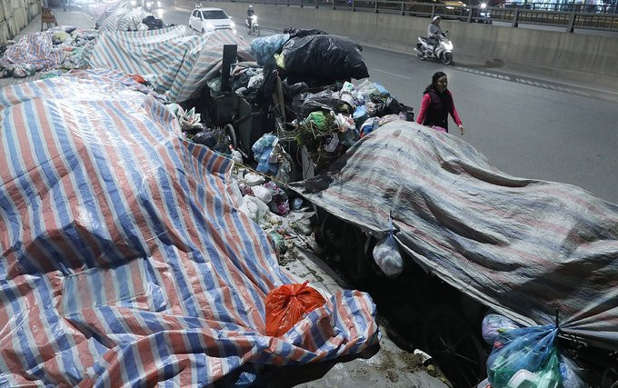Rác thải tràn lòng đường Hà Nội. (Ảnh: Mạc Quang Hiệp)