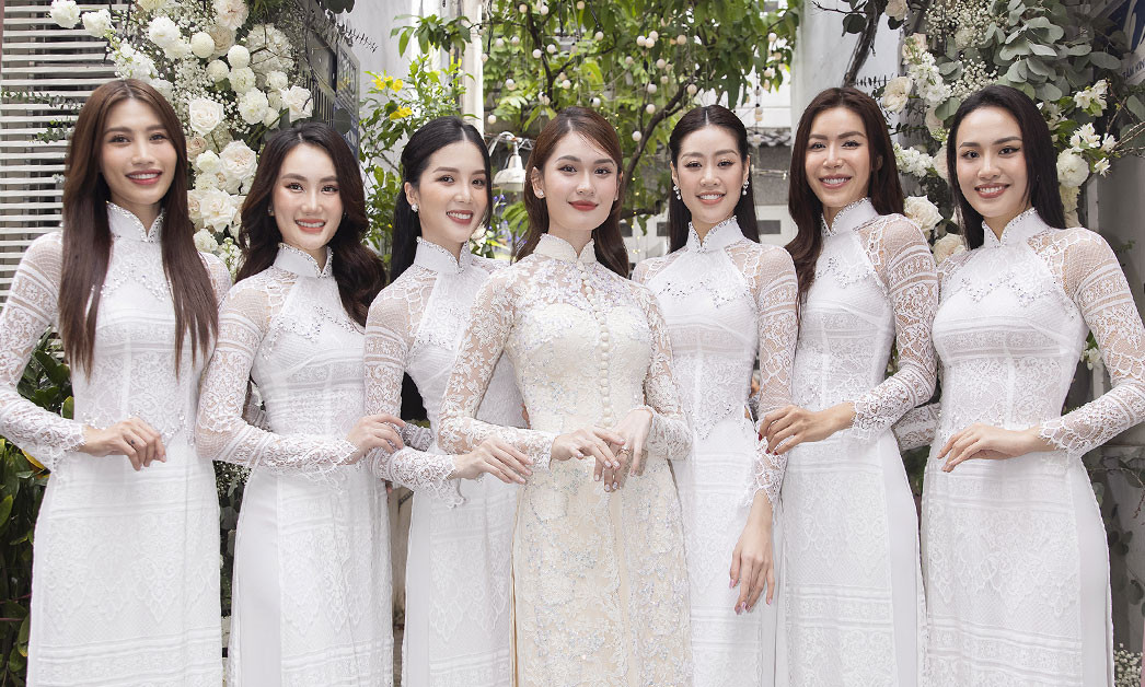 Dàn người đẹp xuất hiện trong tà áo dài trắng, thu hút nhiều ánh nhìn khi tạo dáng nhí nhảnh cùng cô dâu. Đây cũng đều là những người bạn thân thiết với Thuỳ Dung trong công việc lẫn cuộc sống.