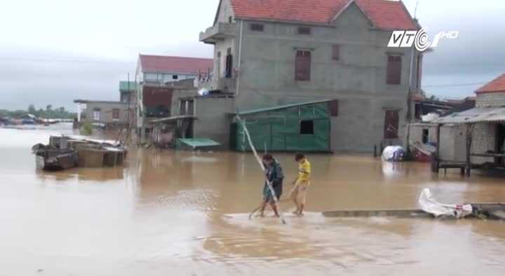 Từ tối 31 đến sáng 1/11, người dân phải thức trắng đêm để chạy lụt. Mưa lớn kéo dài khiến Quốc lộ 12C bị ách tắc.