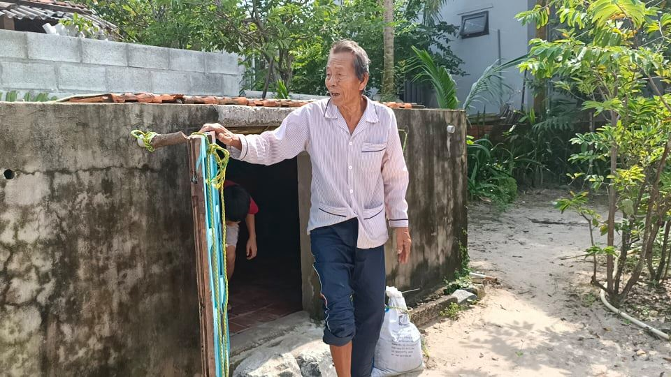 Cụ Giỏi bên căn hầm trú bão của gia đình.