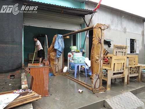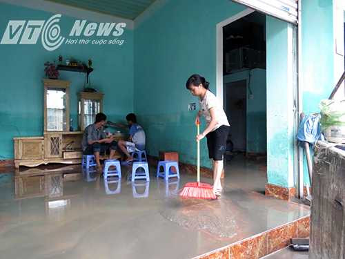 Sáng ra, nhà nhà, người người phải còng lưng khênh đồ đạc ra ngoài lau rửa và dọn dẹp nhà cửa bởi bùn đất tống vào ngập nền nhà.