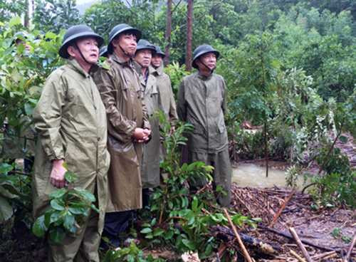 | Ông Nguyễn Văn Đọc - Bí thư Tỉnh ủy Quảng Ninh kiểm tra tình hình ngập lụt đối với 27 hộ dân ở bản Sen - Vân Đồn. |