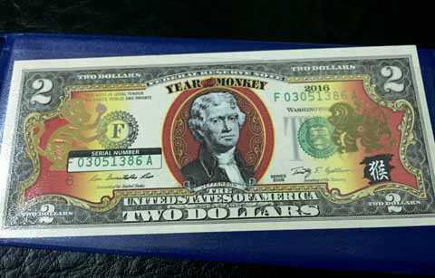 Ngoài ra, đồng tiền 2 USD in hình khỉ mạ vàng có giá lên đến 350.000 đồng/tờ do Bộ Tài chính Mỹ in ấn và phát hành (không có giá trị lưu hành) cũng được người dân săn lùng gắt gao để làm quà tặng, lì xì đầu năm mới.