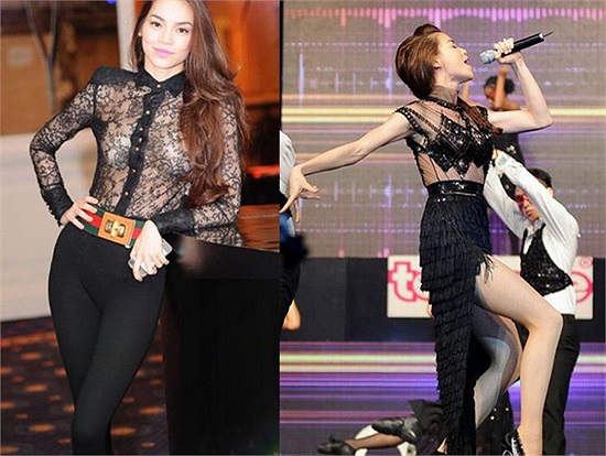 Dù trên sân khấu hay đi sự kiện, khán giả đều dễ dàng bắt gặp Hồ Ngọc Hà khoe vẻ đẹp sexy với áo voan mỏng manh.