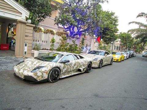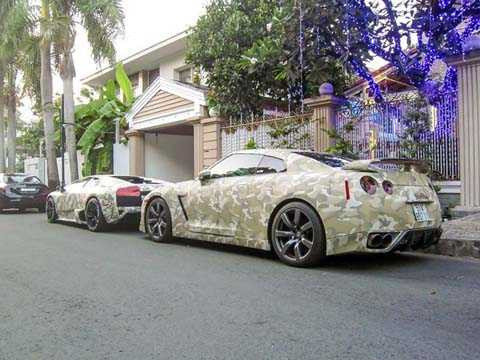 | Xuất hiện trong buổi họp mặt này có nhiều siêu xe lạ mắt như Lamborghini Murcielago LP640 mới đổi thành màu camo và chiếc xe thể thao Nissan GTR cùng màu. |