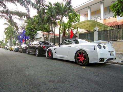| Đứng cuối hàng là chiếc Nissan GTR độ pô, vành và một vài bộ phận khác. |