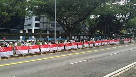 | Người dân Singapore giăng cờ chào cố Thủ tướng Lý Quang Diệu lần cuối - Ảnh: Stratstimes |