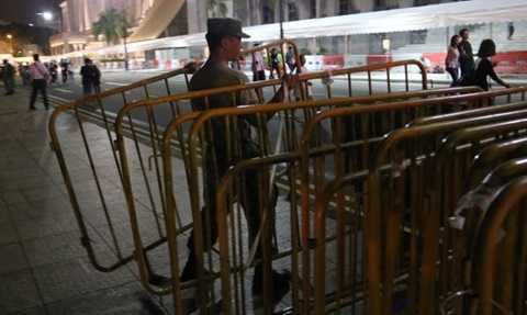 | Binh lính dọn rào chắn quanh tòa nhà Quốc hội Singapore - Ảnh: CNA |