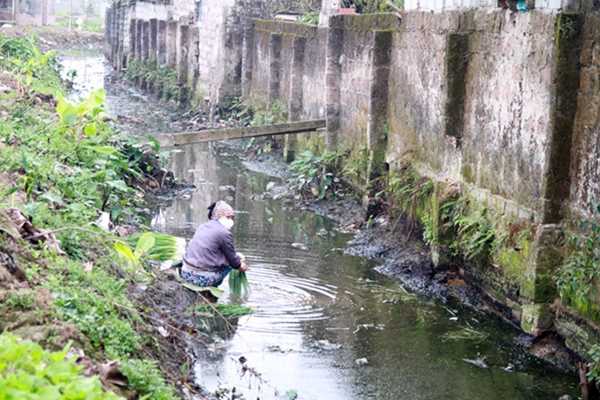 Dòng nước hôi thối, bẩn hơn cả sông Tô Lịch được người dân rửa rau, ném vung vãi lên bờ.