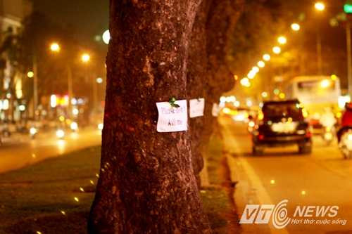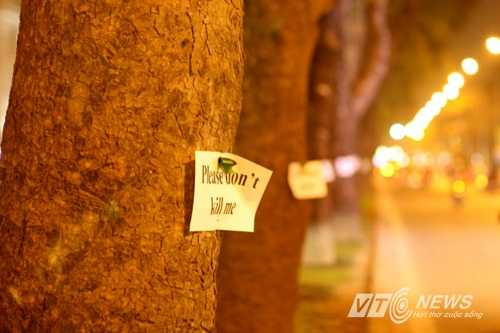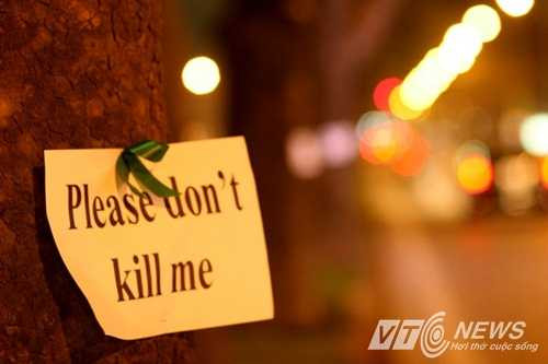 | Các cây cổ thụ được gắn dòng chữ kêu gọi |