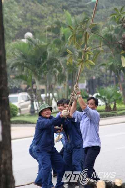 | Các công nhân chặt hạ cây trên đường Nguyễn Chí Thanh |