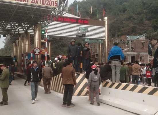 | Rất nhiều người dân kéo ra chặn Trạm thu phí khiến giao thông ùn tắc |